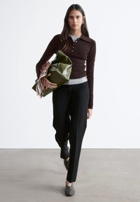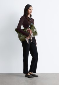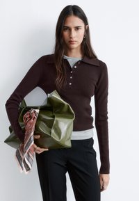 Die Größe fällt in der Farbe dunkelbraun klein aus. Daher empfehlen wir, eine Größe größer zu bestellen.