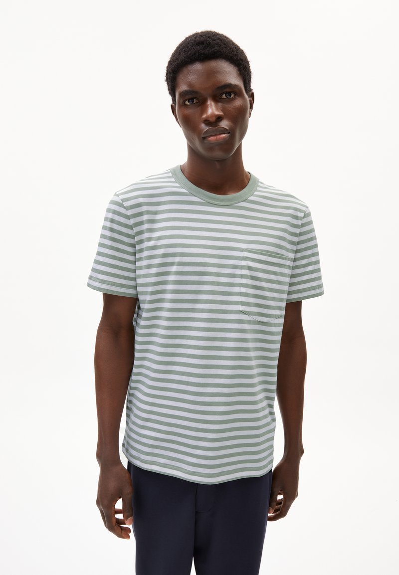 MAARKOS POCKET STRIPES - T-Shirt print - seagreen broken white