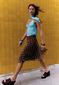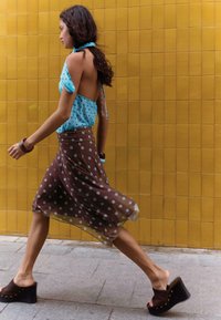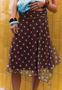 ASYMMETRIC POLKA DOT MIDI SKIRT 02038173 - A-Linien-Rock - dark brown