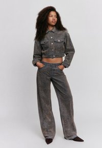TEXTURED LOW-RISE - Jeans Straight Leg - blue denim