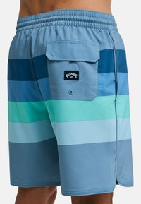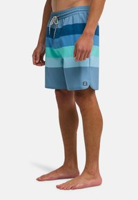 Badeshorts in Blautönen mit horizontalen Streifen, aus schnell trocknendem Material. Verfügt über einen elastischen Bund mit Kordelzug zur Anpassung.