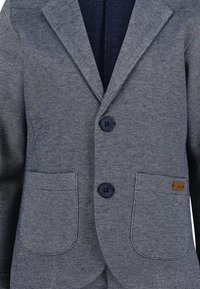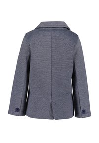 Marineblazer aus strukturiertem Stoff, mit einem Reverskragen, zwei Fronttaschen, zwei Knöpfen und einem kleinen Markenetikett an der Seite.
