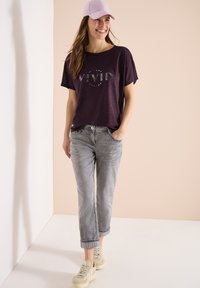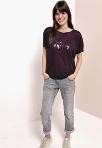 Dropped Shoulders - Turtleneck - Wording Artwork - Linen look - T-Shirt print - rich burgundy
