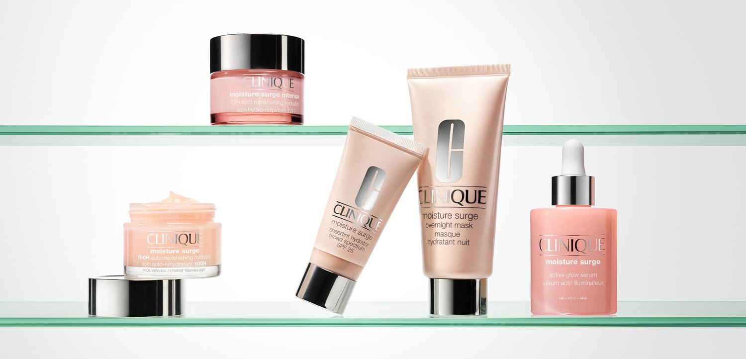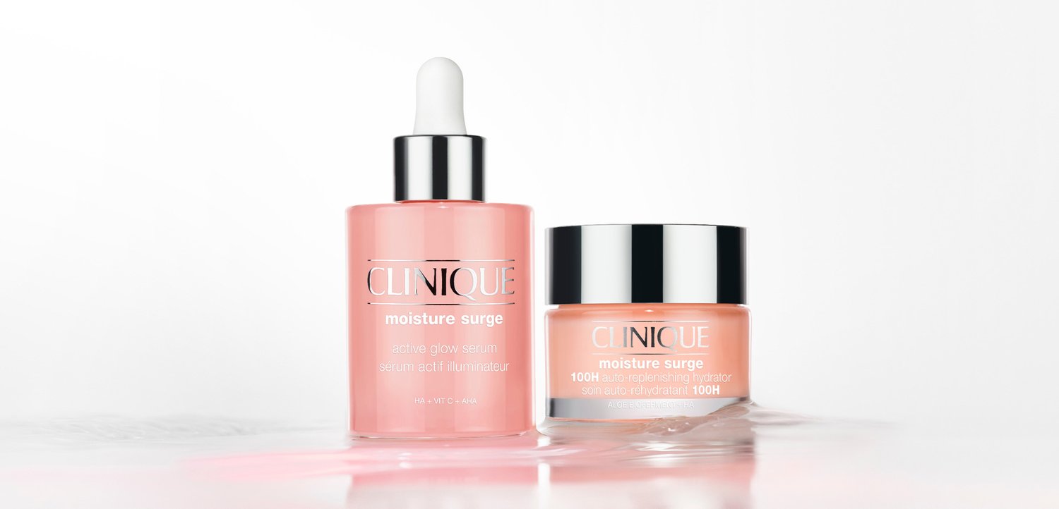 Das Moisture Surge Duo: leichte, schnell einziehende Feuchtigkeit für taufrische, glatte Haut.