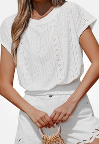 CHIC EYELET EMBROIDERED TOP - T-Shirt basic - white