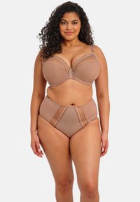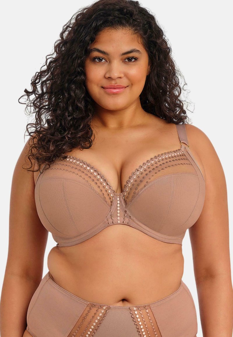 Elomi Favorit Matilda bietet ultimativen Halt und Styling. Der Bügel-Plunge-BH hat eine tiefe Mittelfront, die einen Plunge-Effekt ohne Push-up bietet. Stickerei auf der oberen Körbchen-Partie wertet das Design auf. Die dreiteilige Cupkonstruktion plus Seitenpanel sorgt für eine vorwärts gerichtete Form, guten Auftrieb und Separation. Elastischer Halsrand für optimale Passform. Die flexible Rückenkonstruktion ermöglicht eine einfachere Anpassung zum Racerback mit dem verstellbaren J-Haken. Ringdetail an den Spitzen. 2 Haken-Verschluss: Größen 36-42DD, 36-40E, 36-38F, 36FF, 34G, 32GG; 3 Haken-Verschluss: alle anderen Größen
