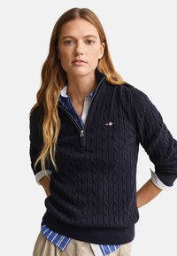 STRETCH CABLE HALF-ZIP - Strickpullover - evening blue