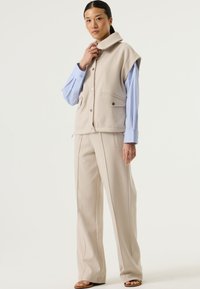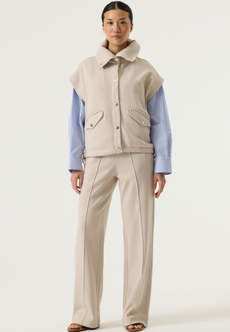 - 56% Polyester, 42% Baumwolle, 2% Elasthan