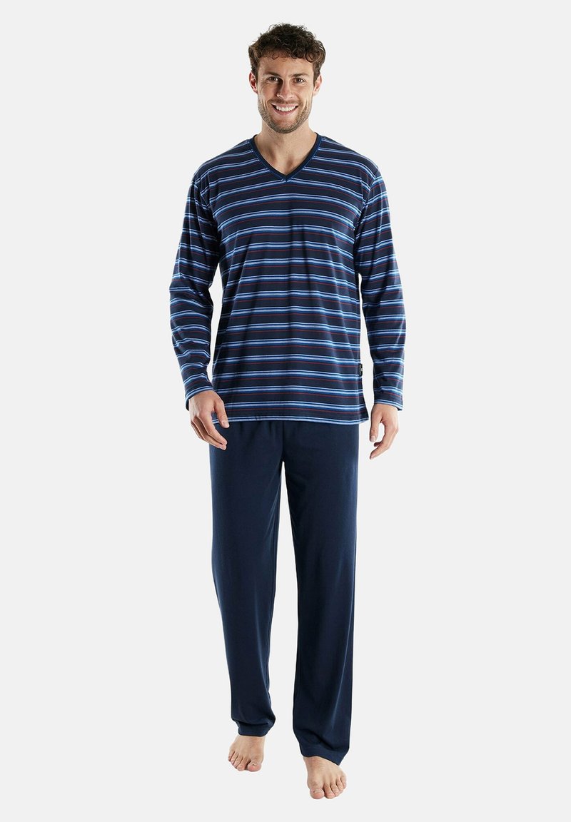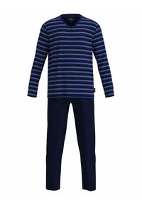 LANG V-AUSSCHNITT GESTREIFT OFFENE BÜNDCHEN SET - Pyjama - blau