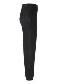Dunkelblaue Sweatpants aus einem weichen Stoff, mit einem elastischen Bund, zwei Fronttaschen und einer schmal zulaufenden Beinform.