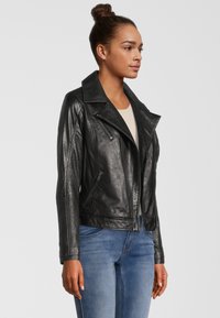 MIT REVERSKRAGEN - Lederjacke - black