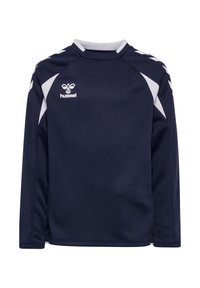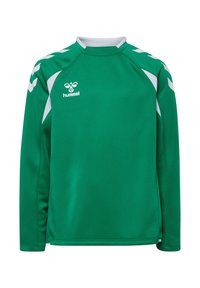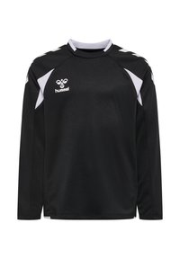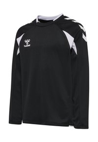 Schwarzes Sporttrikot mit langen Ärmeln, weißen Akzenten an den Schultern und weißem Hummel-Logo auf der linken Brust.