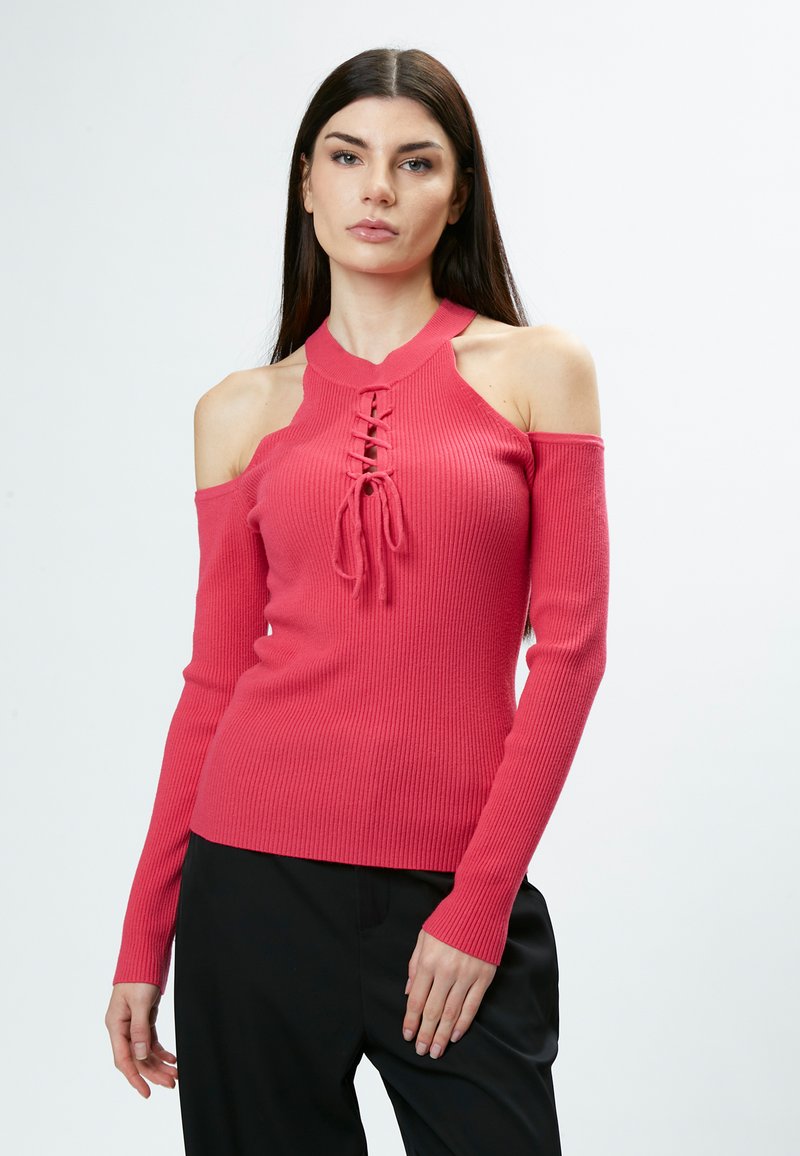 INFLUENCER PULLOVER OFF-SHOULDER RIBBED PULL - Strickpullover - pink