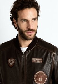 Lederjacke - schwarz orange