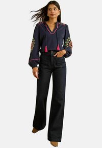 PETITE FIT-EMBROIDERED NOTCH LONG SLEEVE - Langarmshirt - navy heart ric rac