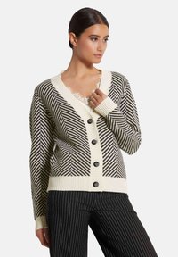 MIT JACQUARD-MUSTER - Strickjacke - black wool white