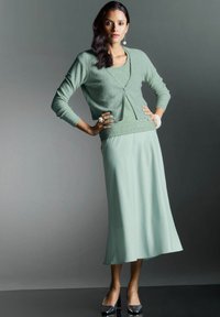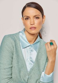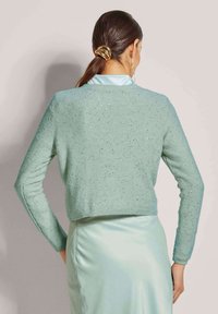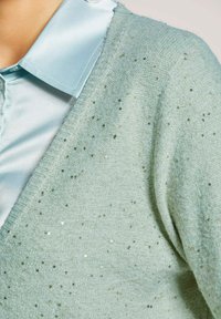 KURZE MIT PAILLETTEN-GLANZ - Strickjacke - sage green silver