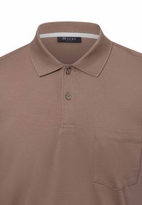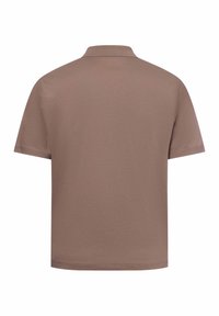 Kurzärmliges Polohemd in Hellbraun, aus weichem Stoff, mit einer Drei-Knopf-Leiste und einer Brusttasche sowie einem geraden Saum.