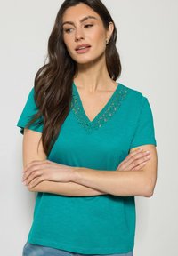 DealGroße Größenheart_outlinedUlla PopkenBEADED NECKLINE SHORT SLEEVE TEE - T-Shirt print - green blue€ 55,99Statt:€ 69,99-20%