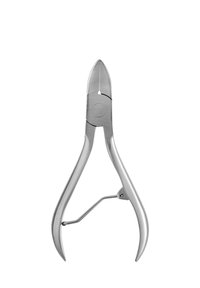 Zum Gebrauch heben Sie den Clip, der am Griff befestigt ist, in Richtung der Basis der Schermaschine, so dass er eine "Feder" bildet, wenn die Griffe zusammengedrückt werden. Legen Sie den Knipser zwischen Daumen und Zeigefinger in die Hand und schließen Sie die Hand um den Knipser, damit Sie ihn gut greifen können. Schneiden Sie die Zehennägel immer gerade und weichen Sie die Kanten gegebenenfalls mit einer Kristallnagelfeile ab. Wenn der Nagel sehr dick ist, können Sie zusätzlichen Druck über die Spitze der Klinge ausüben. Nach dem Gebrauch immer abwaschen, abtrocknen und sicher aufbewahren.