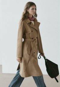 DOUBLE-BREASTED BUTTON TRENCH WITH BELT - Trenchcoat - brown