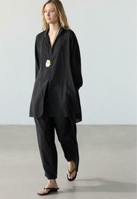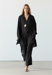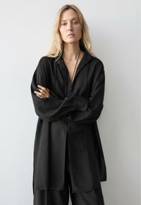 FLOWING LONG SHIRT WITH STAND COLLAR - Tunika - black