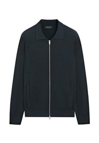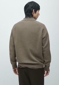 Strick-Cardigan aus Baumwollmischgewebe. Polo-Kragen. Mit Reißverschluss. Lange Ärmel.