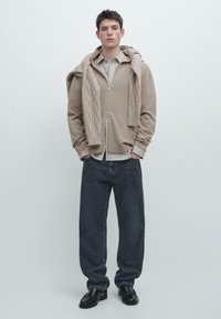 ZIP-UP KNIT WITH HOOD - Strickjacke - brown