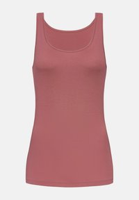 Weißes Tanktop aus glattem Stoff mit quadratischem Ausschnitt und breiten Trägern, kombiniert mit passender weißer Unterwäsche.