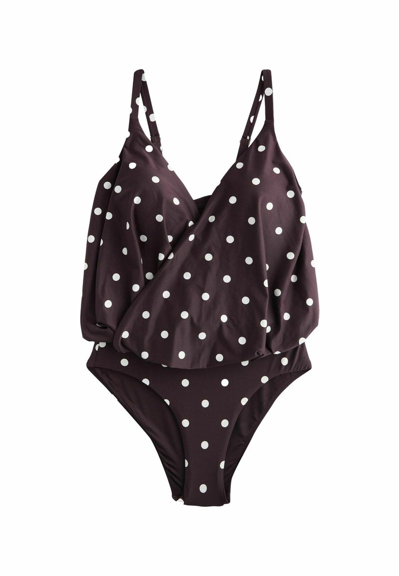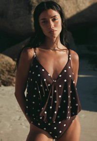 TALL FIT - WRAP BLOUSON TUMMY CONTROL - Badeanzug - chocolate brown cream spot
