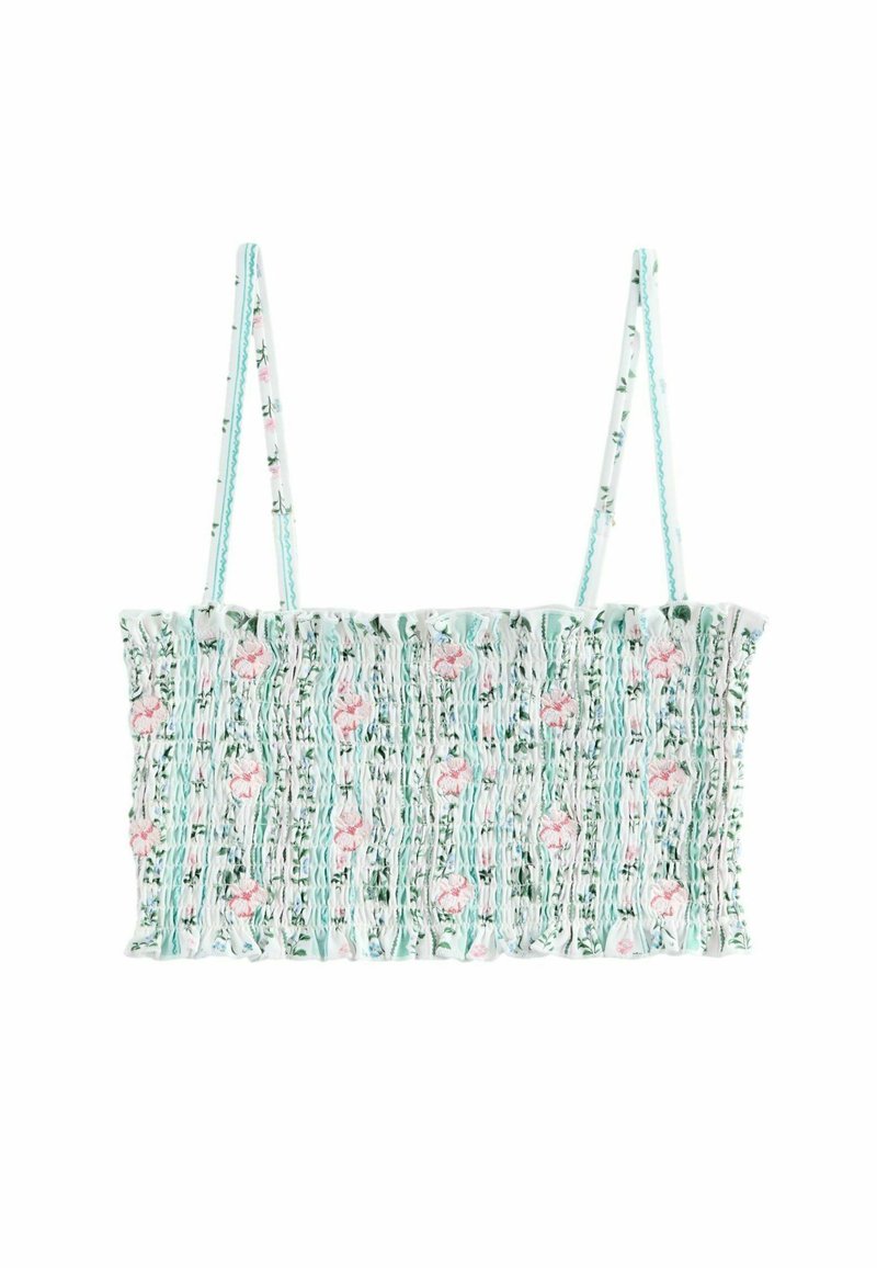 SHIRRED BANDEAU - Bikini-Top - blue ecru floral embroidered