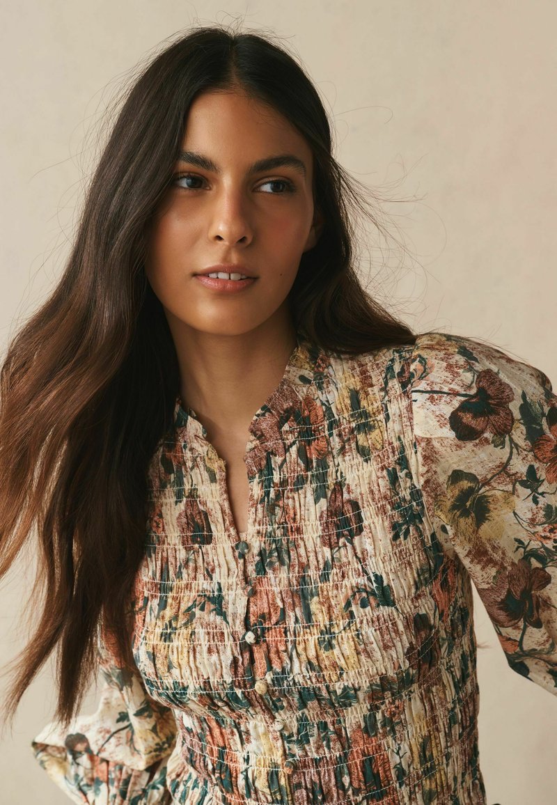 PETITE FIT - SMOCKED BUTTON FRONT LONG SLEEVE - Hemdbluse - multi vintage floral print