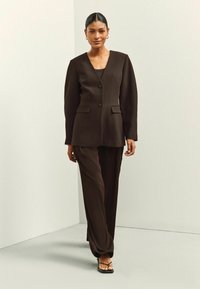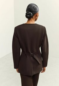 TALL FIT - V-NECK COLLARLESS BLAZER . - Kurzmantel - chocolate brown