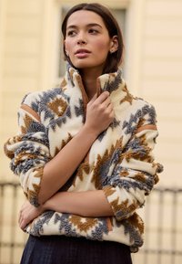 REGULAR FIT - PREMIUM AZTEC PRINT BORG ZIP - Strickpullover - neutral grey