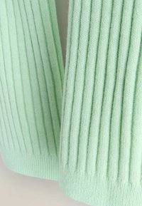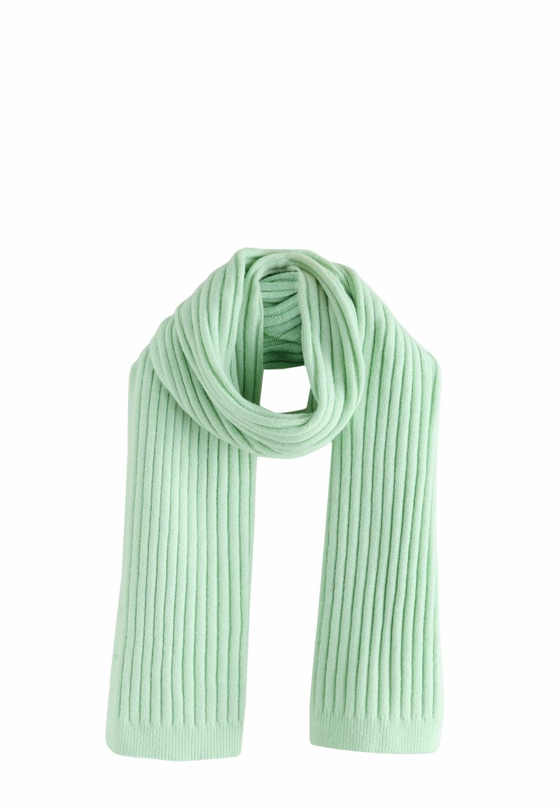 Rippenstrickschal in Minzgrün aus weichem Stoff; verfügt über ein strukturiertes Muster und abgerundete Enden für zusätzlichen Komfort.