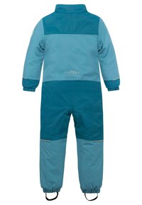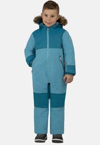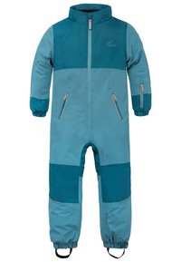 Der strahlend blaue Himmel, die geschlossene Schneedecke und der malerische Blick ins, wie mit Puderzucker bestreute, Tal, wecken die tief sitzende Wintersportlust bei kleinen Abenteurern. Mit dem recyceltem Kinder Winter Overall „Kular“ werden kleine Entdecker sicher und nachhaltig vor eindringender Kälte und Schnee geschützt, ohne an Atmungsaktivität einzubüßen. Der Overall besteht zu 100 % aus recyceltem Polyester. In einem modernen Recyclingverfahren wurde das Polyester zu 100 % aus recycelten PET Flaschen gewonnen. Durch Zerkleinern, Mahlen, Waschen, Schmelzen, Spinnen und Texturieren wurde aus den PET Flaschen ein neuer Stoff gewonnen. Abhängig von der Größe des Overalls wurden 20 - 38 PET Flaschen pro Overall recycelt. Für zuverlässige Wasserdichte auf der Piste, ohne zu überhitzen, sorgt die Membran aus Polyurethan auf der Innenseite des Overalls. Durch die Membran wird eine Wassersäule von 10.000 mm und eine Atmungsaktivität von 5.000 g/m² pro 24h erreicht. Wir legen Wert auf ein leichtgängiges Öffnen und Schließen des Hauptreißverschlusses und der einzelnen Taschen, daher wurden lediglich Markenreißverschlüsse von SBS für den Overall verwendet. Neben dem Hauptreißverschluss verfügt der Overall außerdem über zwei seitliche Reißverschlusstaschen, in denen gefundene Schätze verlustfrei transportiert werden können. Zudem besitzt der Overall eine Reißverschlusstasche am Unterarm. In dieser kann der Skipass sicher verstaut und am Skilift gescannt werden. Sowohl die Kapuze als auch der Fellrand lassen sich nach Belieben vom Rest des Overalls trennen. Der Fellrand kann mittels Reißverschluss von der Kapuze abgenommen werden. Die Kapuze kann wiederum durch Knöpfe vom Kragen des Overalls gelöst werden. Für zusätzlichen Schutz vor Kälte sorgen die Gamaschen mit Daumenöffnung am Handgelenk und die Windschutzleiste mit Zippergarage am Hauptreißverschluss. Angebrachte Reflektoren an den Reißverschlusstaschen, Armabschlüssen, unter den Knien auf Vorder- und Rückseite, sorgen für eine bessere Sichtbarkeit Ihres Kindes bei Dämmerung. Weiterhin reflektierenden die Reißverschlusspuller mit unserem Logo und unsere bekannte Bergkette auf dem unteren Rücken. Damit die Bewegungsfreiheit der angehenden Wintersportler nicht eingeschränkt wird, ist der Overall im Schritt mit einer Zwickel ausgestattet. Für einen besseren Sitz am Bein, verfügt der Overall über Schlaufen am Fußende, die mittels Knöpfen verstellt oder auch ganz abgenommen werden können. Das zweifarbige, kindgerechte Design wirkt verspielt, abwechslungsreich und stimmig, betont wird es weiterhin durch den farblich abgestimmten Rubber auf dem linken Oberarm.