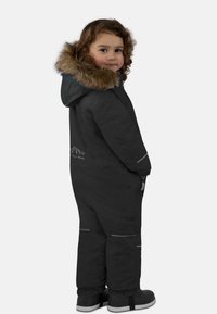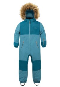 Der strahlend blaue Himmel, die geschlossene Schneedecke und der malerische Blick ins, wie mit Puderzucker bestreute, Tal, wecken die tief sitzende Wintersportlust bei kleinen Abenteurern. Mit dem recyceltem Kinder Winter Overall „Kular“ werden kleine Entdecker sicher und nachhaltig vor eindringender Kälte und Schnee geschützt, ohne an Atmungsaktivität einzubüßen. Der Overall besteht zu 100 % aus recyceltem Polyester. In einem modernen Recyclingverfahren wurde das Polyester zu 100 % aus recycelten PET Flaschen gewonnen. Durch Zerkleinern, Mahlen, Waschen, Schmelzen, Spinnen und Texturieren wurde aus den PET Flaschen ein neuer Stoff gewonnen. Abhängig von der Größe des Overalls wurden 20 - 38 PET Flaschen pro Overall recycelt. Für zuverlässige Wasserdichte auf der Piste, ohne zu überhitzen, sorgt die Membran aus Polyurethan auf der Innenseite des Overalls. Durch die Membran wird eine Wassersäule von 10.000 mm und eine Atmungsaktivität von 5.000 g/m² pro 24h erreicht. Wir legen Wert auf ein leichtgängiges Öffnen und Schließen des Hauptreißverschlusses und der einzelnen Taschen, daher wurden lediglich Markenreißverschlüsse von SBS für den Overall verwendet. Neben dem Hauptreißverschluss verfügt der Overall außerdem über zwei seitliche Reißverschlusstaschen, in denen gefundene Schätze verlustfrei transportiert werden können. Zudem besitzt der Overall eine Reißverschlusstasche am Unterarm. In dieser kann der Skipass sicher verstaut und am Skilift gescannt werden. Sowohl die Kapuze als auch der Fellrand lassen sich nach Belieben vom Rest des Overalls trennen. Der Fellrand kann mittels Reißverschluss von der Kapuze abgenommen werden. Die Kapuze kann wiederum durch Knöpfe vom Kragen des Overalls gelöst werden. Für zusätzlichen Schutz vor Kälte sorgen die Gamaschen mit Daumenöffnung am Handgelenk und die Windschutzleiste mit Zippergarage am Hauptreißverschluss. Angebrachte Reflektoren an den Reißverschlusstaschen, Armabschlüssen, unter den Knien auf Vorder- und Rückseite, sorgen für eine bessere Sichtbarkeit Ihres Kindes bei Dämmerung. Weiterhin reflektierenden die Reißverschlusspuller mit unserem Logo und unsere bekannte Bergkette auf dem unteren Rücken. Damit die Bewegungsfreiheit der angehenden Wintersportler nicht eingeschränkt wird, ist der Overall im Schritt mit einer Zwickel ausgestattet. Für einen besseren Sitz am Bein, verfügt der Overall über Schlaufen am Fußende, die mittels Knöpfen verstellt oder auch ganz abgenommen werden können. Das zweifarbige, kindgerechte Design wirkt verspielt, abwechslungsreich und stimmig, betont wird es weiterhin durch den farblich abgestimmten Rubber auf dem linken Oberarm.