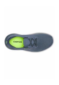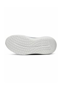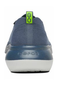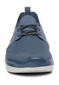 Marineblauer leichter Sneaker mit atmungsaktivem Mesh-Vorderteil, gepolstertem Kragen, Schnürverschluss, weißer dicker Sohle und Markenlogo an der Seite.