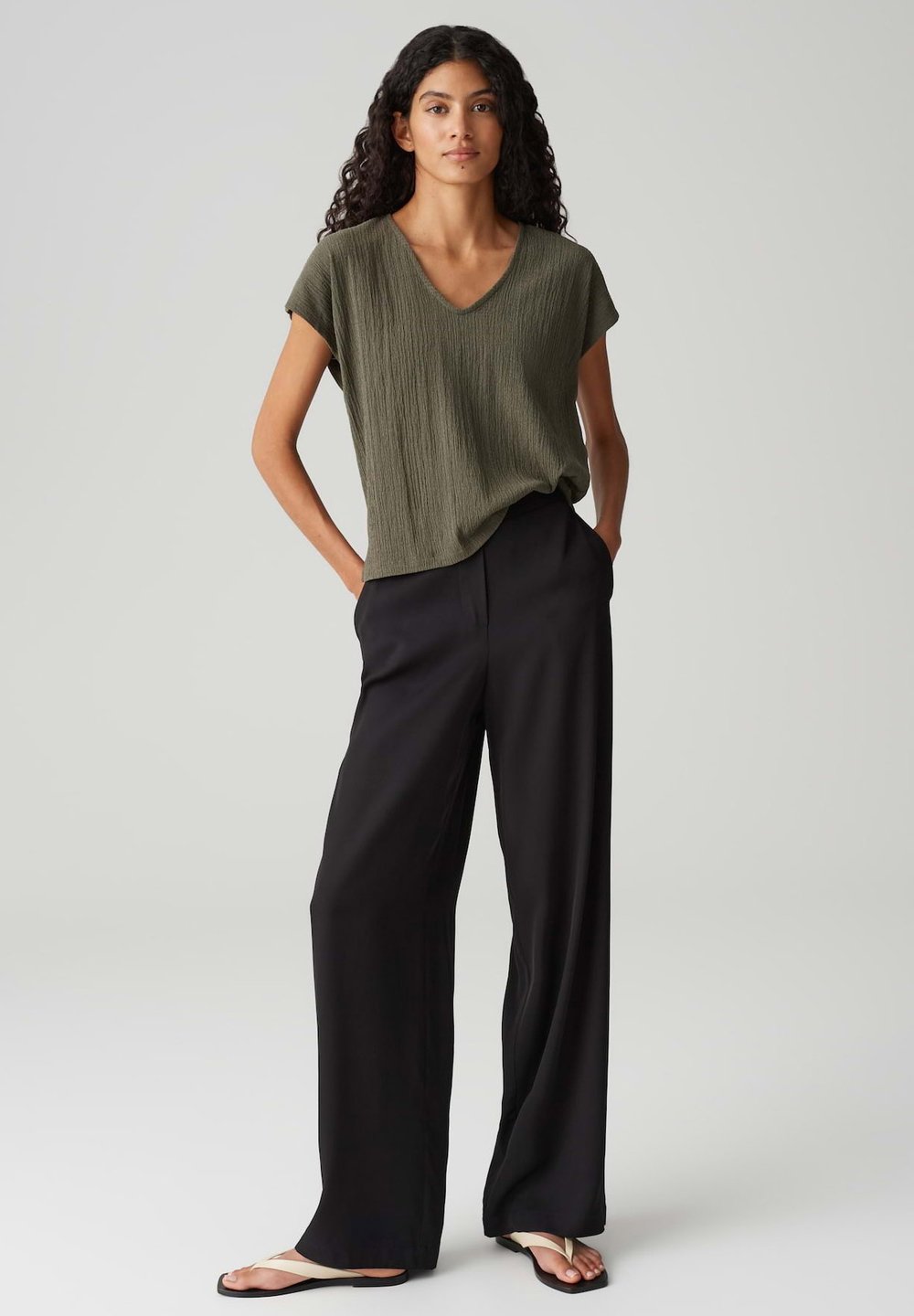 HIGH RISE LONG WIDE FIT - Stoffhose - black