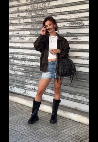 WITH ELASTICATED HEM - Kunstlederjacke - brown