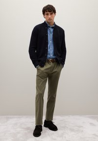 Der blaue Cardigan von Piombo ist aus reiner Baumwolle gefertigt und ideal für Männer, die Komfort und Stil suchen. Perfekt für die Herbst/Winter Saison, besitzt er einen mit Knöpfen besetzten Kragen, der den Charakter des Kleidungsstücks definiert. Dank seiner regulären Passform und Strickstickerei bietet er Bewegungsfreiheit und Wärme an kühlen Tagen. Ein vielseitiges Kleidungsstück, das sich leicht mit verschiedenen Casual-Outfits kombinieren lässt.