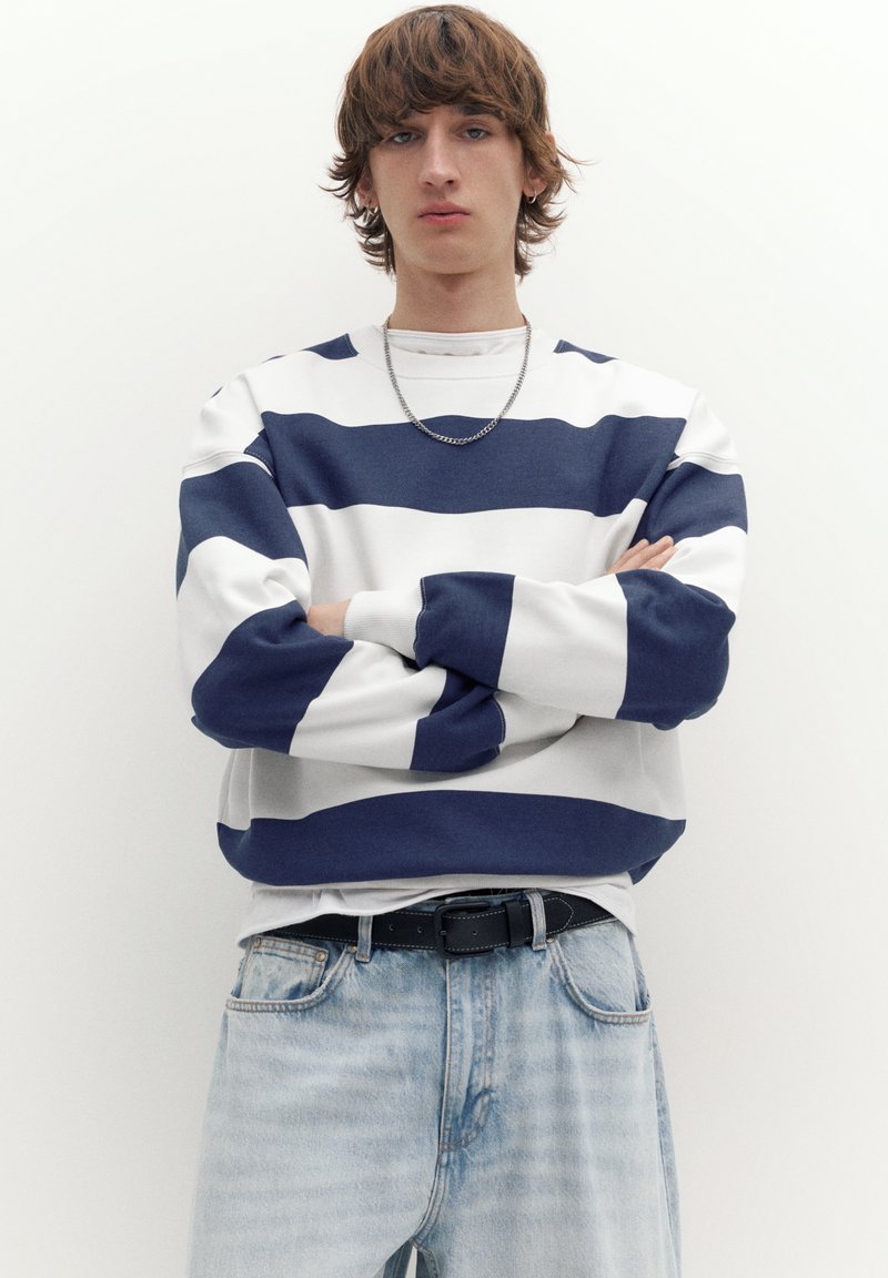 STRIPED ROUND NECK - Sweatshirt - blue