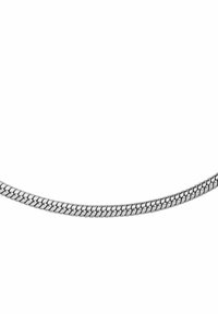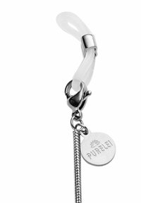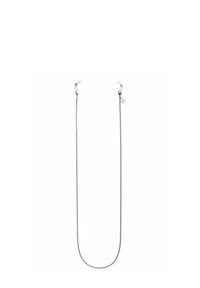Silberfarbener Kettenanhänger mit einem eleganten, minimalistischen Design. Verfügt über eine feine, glatte Textur und kleine Karabinerhaken an jedem Ende.