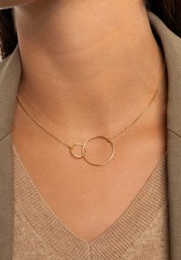 Zwei verbundene Ringe, die in der Sister Necklace aus Sterling Silber mit 18K Goldplattierung die Ewigkeit symbolisieren. Eine originelle Geschenkidee für besondere Menschen.