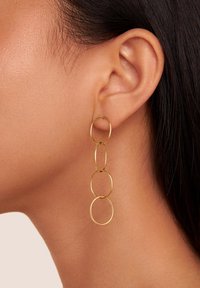 Die trendigen Kreisohrringe, die im Trend liegen. Diese langen vergoldeten Ohrringe sind leicht, bequem und haben viel Bewegung.