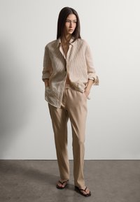BEIGE SLIM FIT LINEN BLEND TROUSERS. - Stoffhose - light beige
