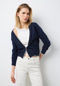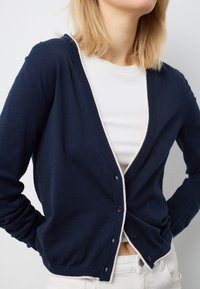 DEEP V WITH BUTTONS - Strickjacke - navy blue