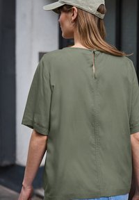 KURZARM BLUSE MIT RUNDHALS IN UNIFARBE - Bluse - lichen green
