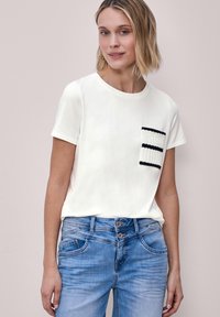 KURZARM SHIRT MIT STREIFEN-TASCHE - T-Shirt print - off white