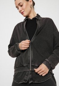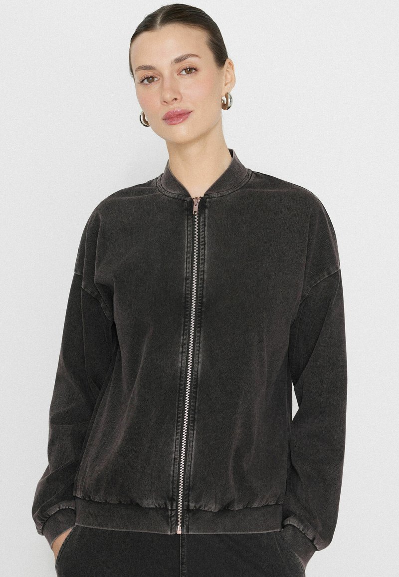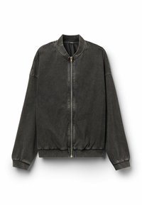 Bomberjacke aus Stretch-Denim mit Faded-Effekt, Reißverschluss und Bündchen.